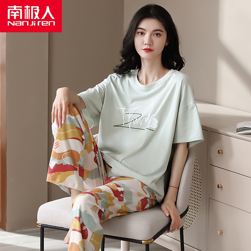 Model's sleepy dress in 2022 new spring and autumn short sleeve trousers can wear spring and summer home suit