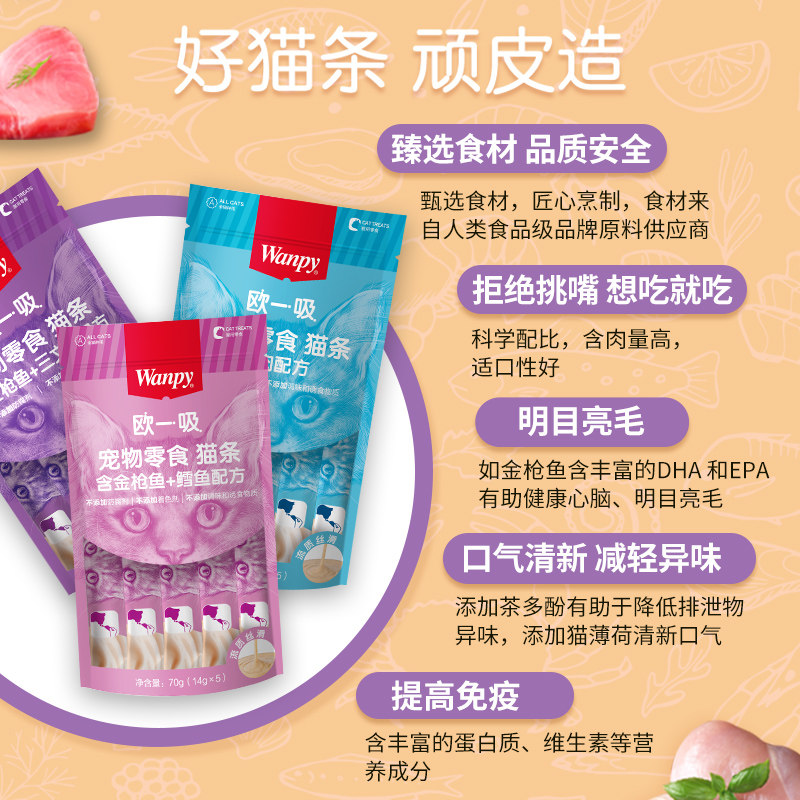 Wanpy Naughty Cat Catty Cat Snacks Nutrition Fatter Cat Wet Grain Into Young Cat Meau One Suction Cat Jars 5 Pack Bag