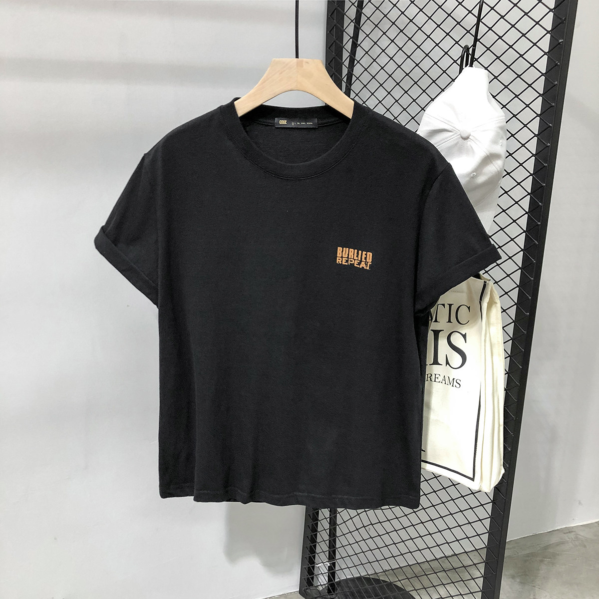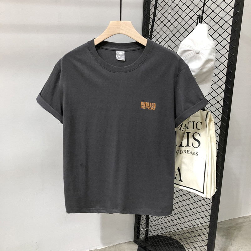 TELINLU▲Retro print old loose short-sleeved T-shirt men's round neck summer college style youth half-sleeved T-shirt