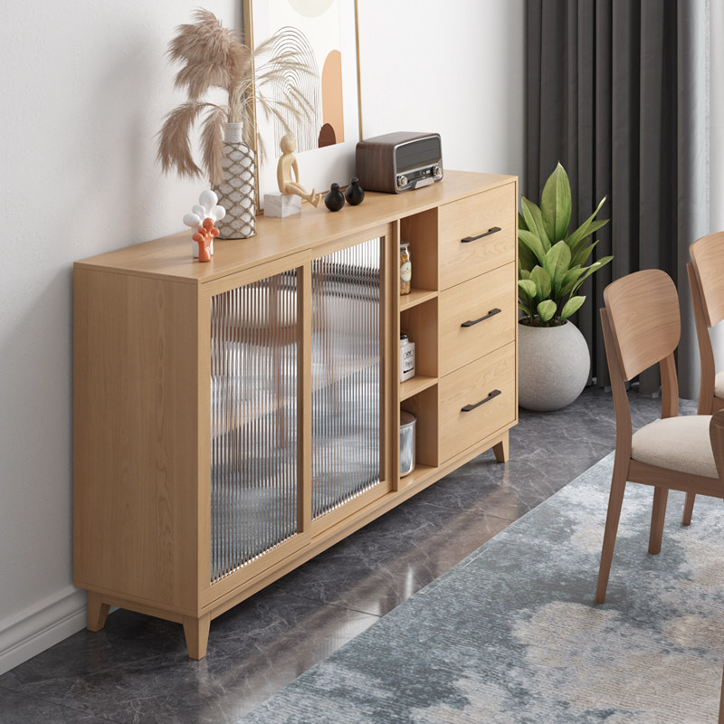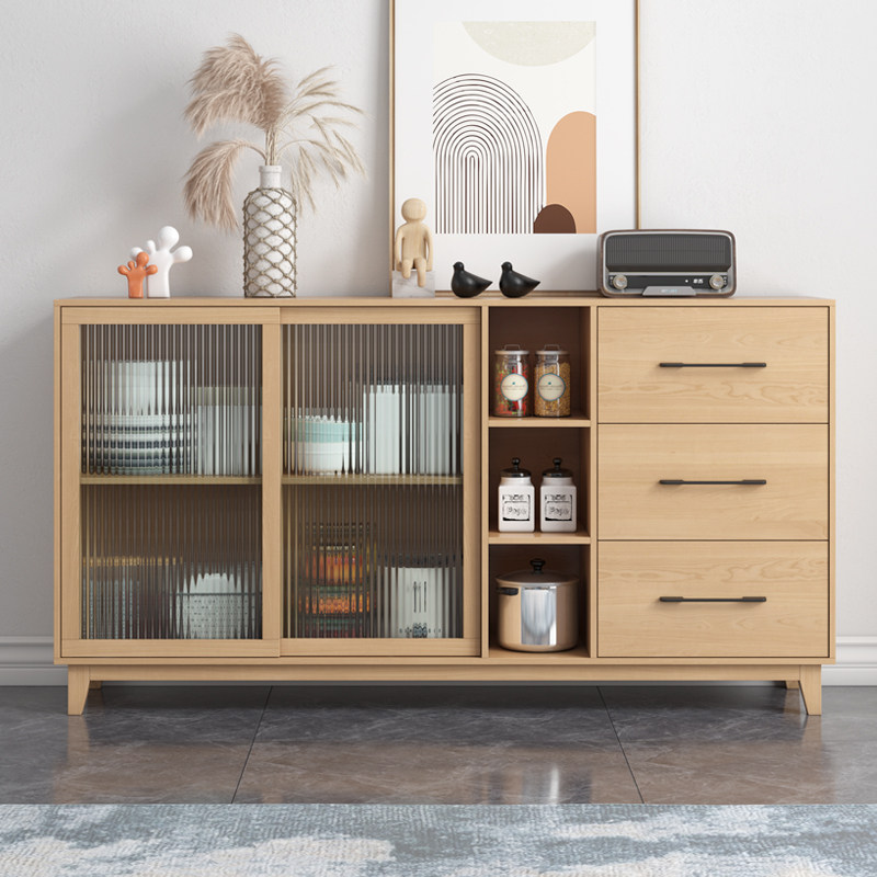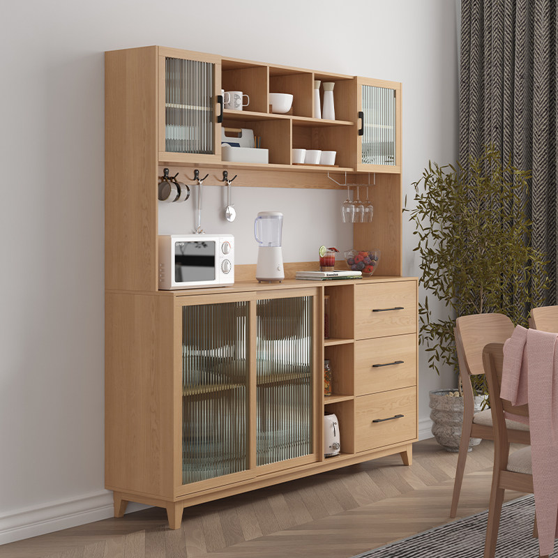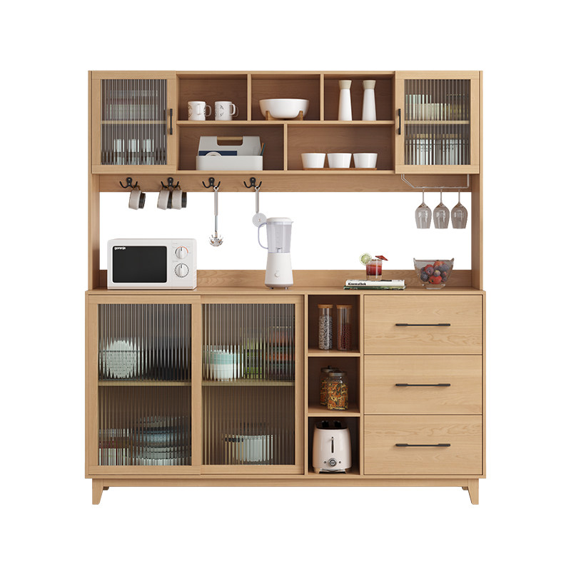 Solid Wood Dining Side Cabinet Storage Day Style Nordic Bowls Closet Tea Water Cabinet Kitchen Home original wood colour set Push-pull Glass Door-Taobao