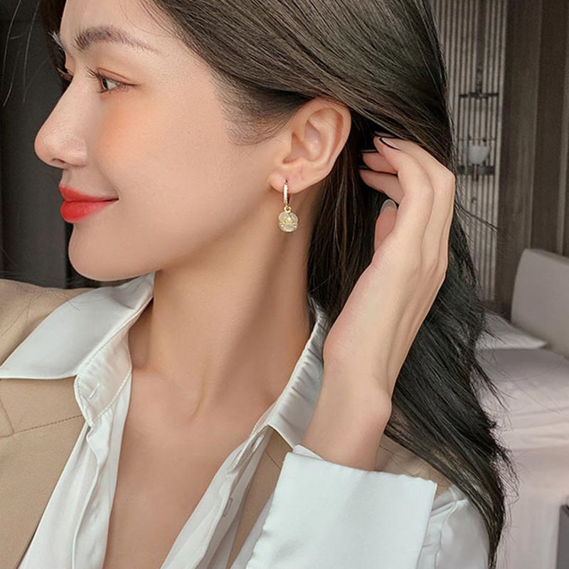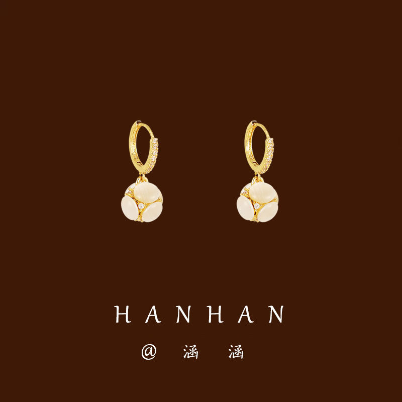 Korea Light Extravagant Cat Eyewear Stone Earrings New Tide Niche Design Refined Ear Needle Advanced Sensual Style Retro Woman