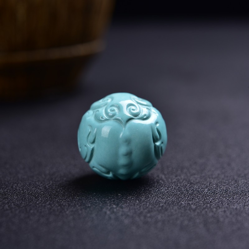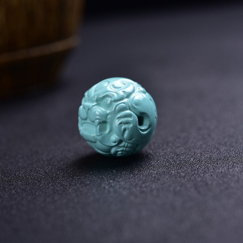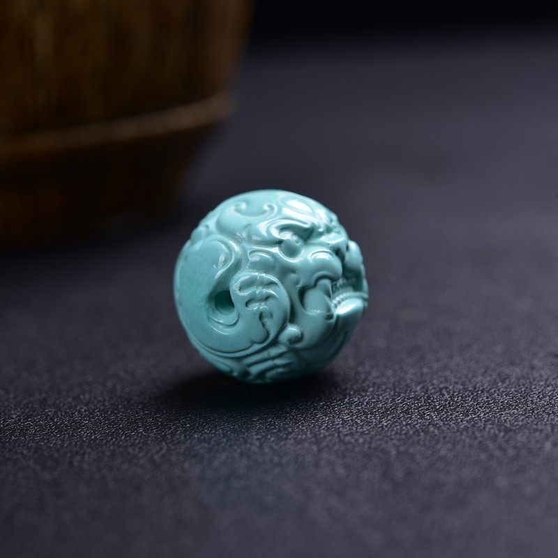 Hubei Natural Raw Mine Green Pine Stone Leopard single Pearl Carved Beast Bead Pearl Dragon Everest Pearl Pearl Moon Hand-string Accessories