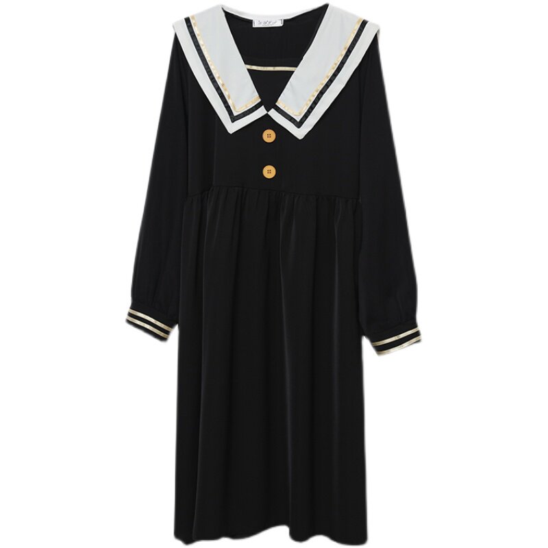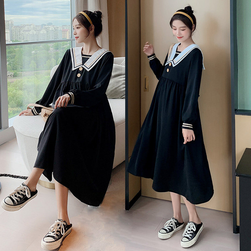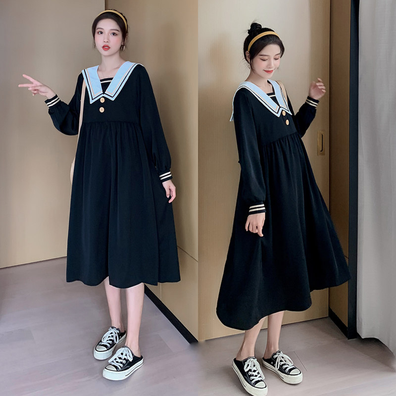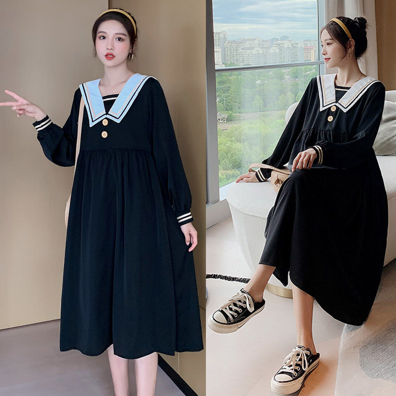 Pregnant women spring large size loose fashion foreign style jacket Korean version mid-length navy collar slim long-sleeved dress female