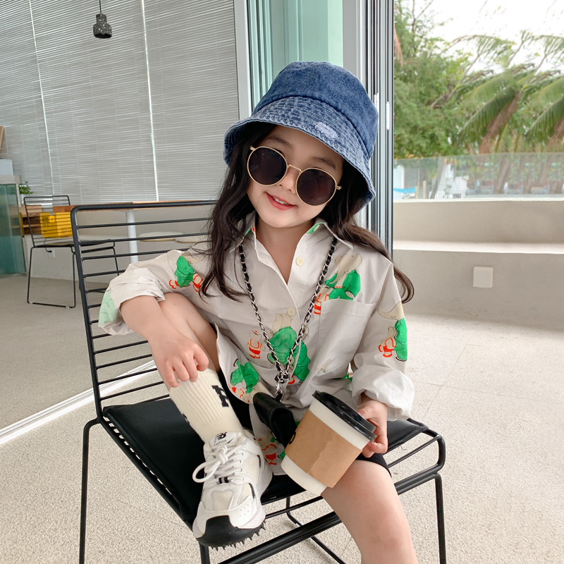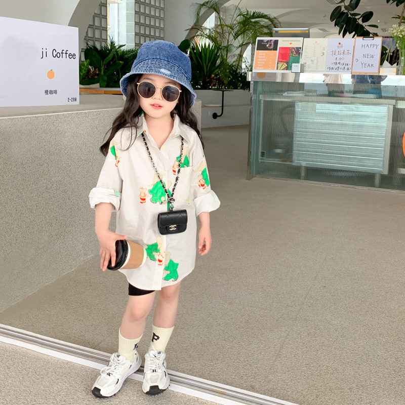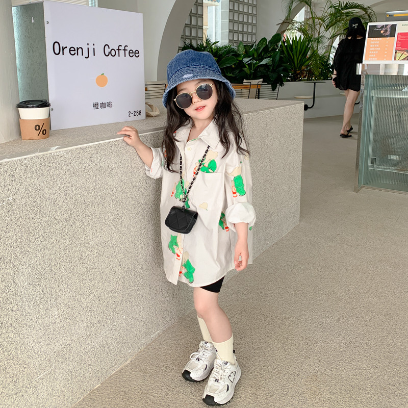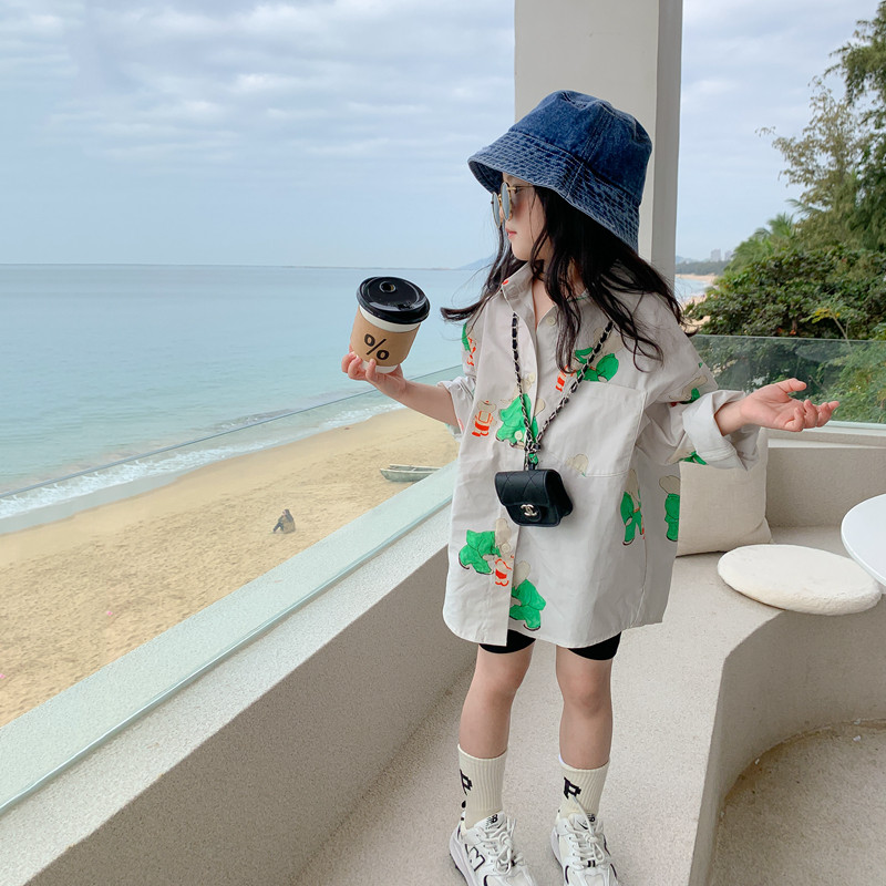 Small Girl Shirt Spring Summer Children's Clothing 2022 New Children Baby Foreign Korean Version Trendy Medium Long Version Shirt Jacket
