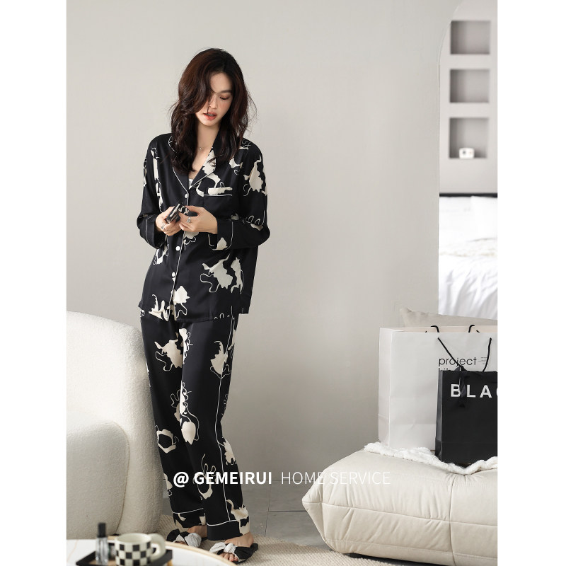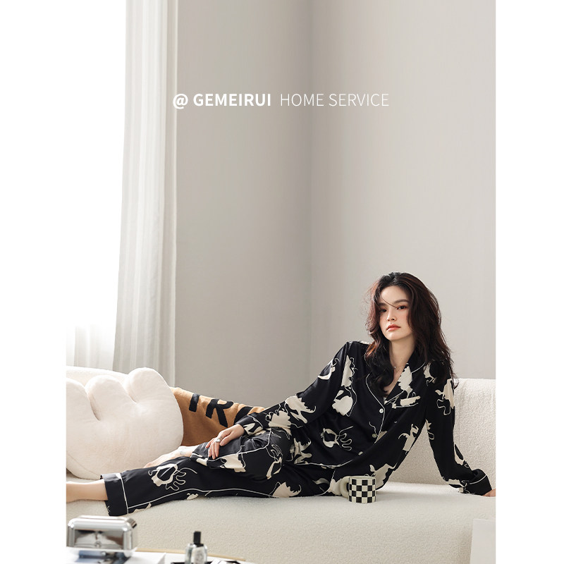 Silk Sleeping Women Summer Advanced Sensation Ice Silk Home Conserved Spring Autumn Thin models Emulated Silk Long Sleeve Sexy Woman Taste Suit