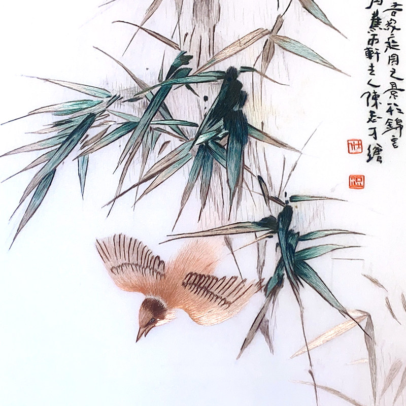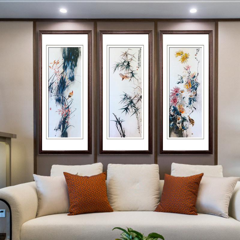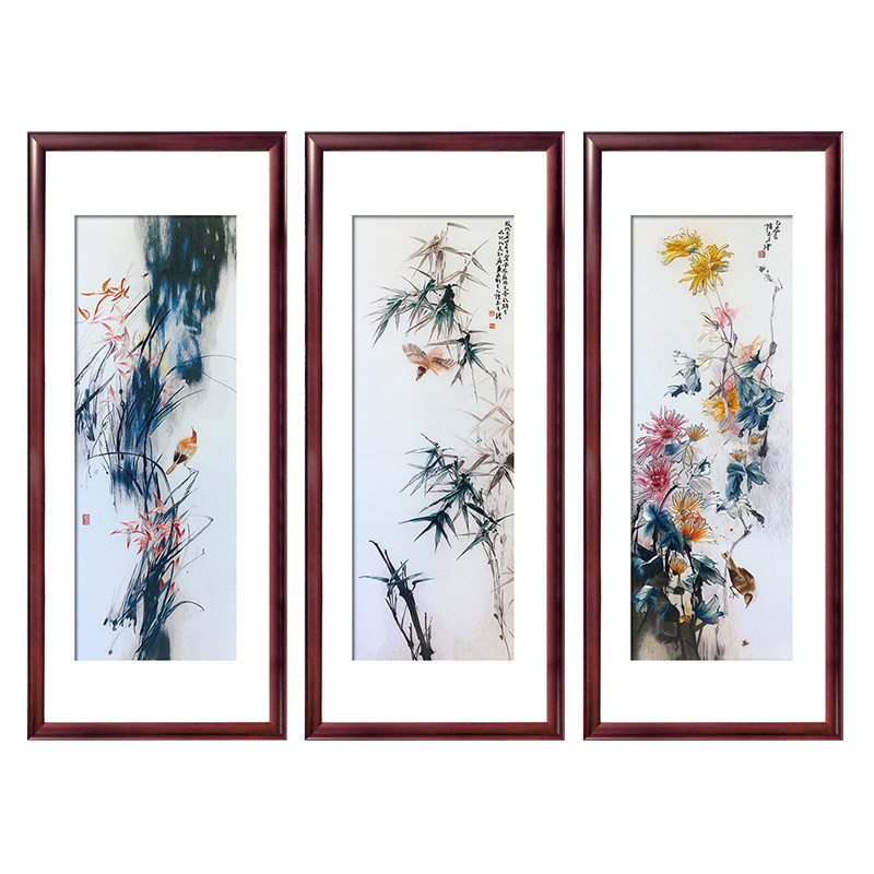 Jinwu needle 1-4 silk Su embroidery finished hanging painting pure handmade embroidery painting Chinese decorative painting joint painting living room orchid, bamboo and chrysanthemum