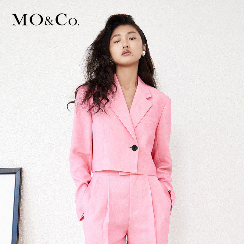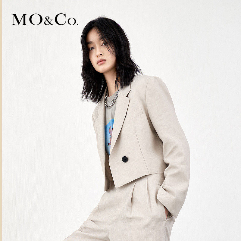 MOCO2022 spring new linen blend simplicity approx. wide shoulder short suit jacket MBB1BLA019 Moanke