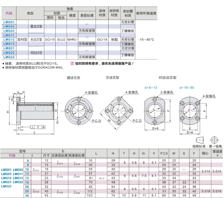 LMG11 LMG11 LMG12-d6 8 10 12 12 16 16 25 30 30 with double lining flange linear bearings