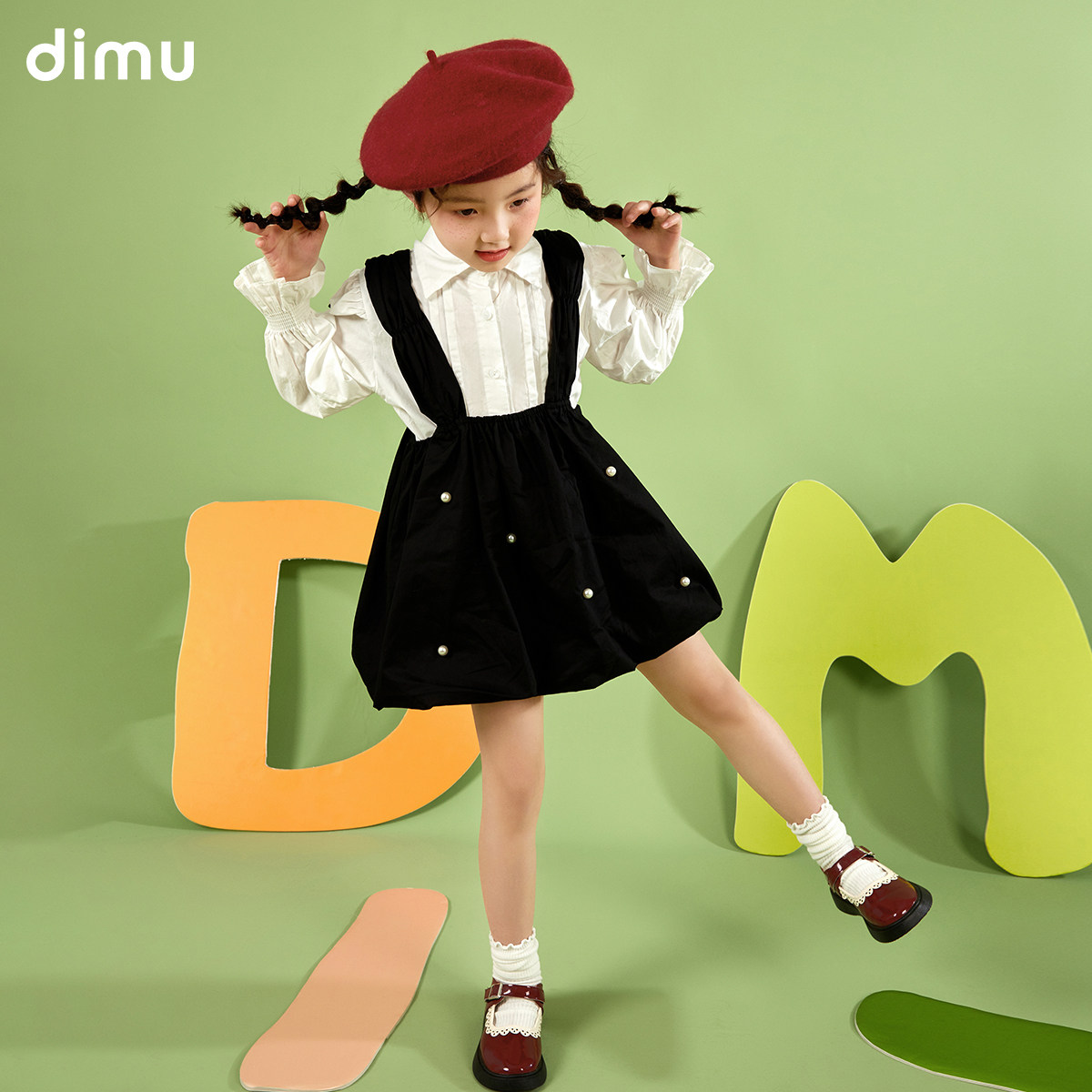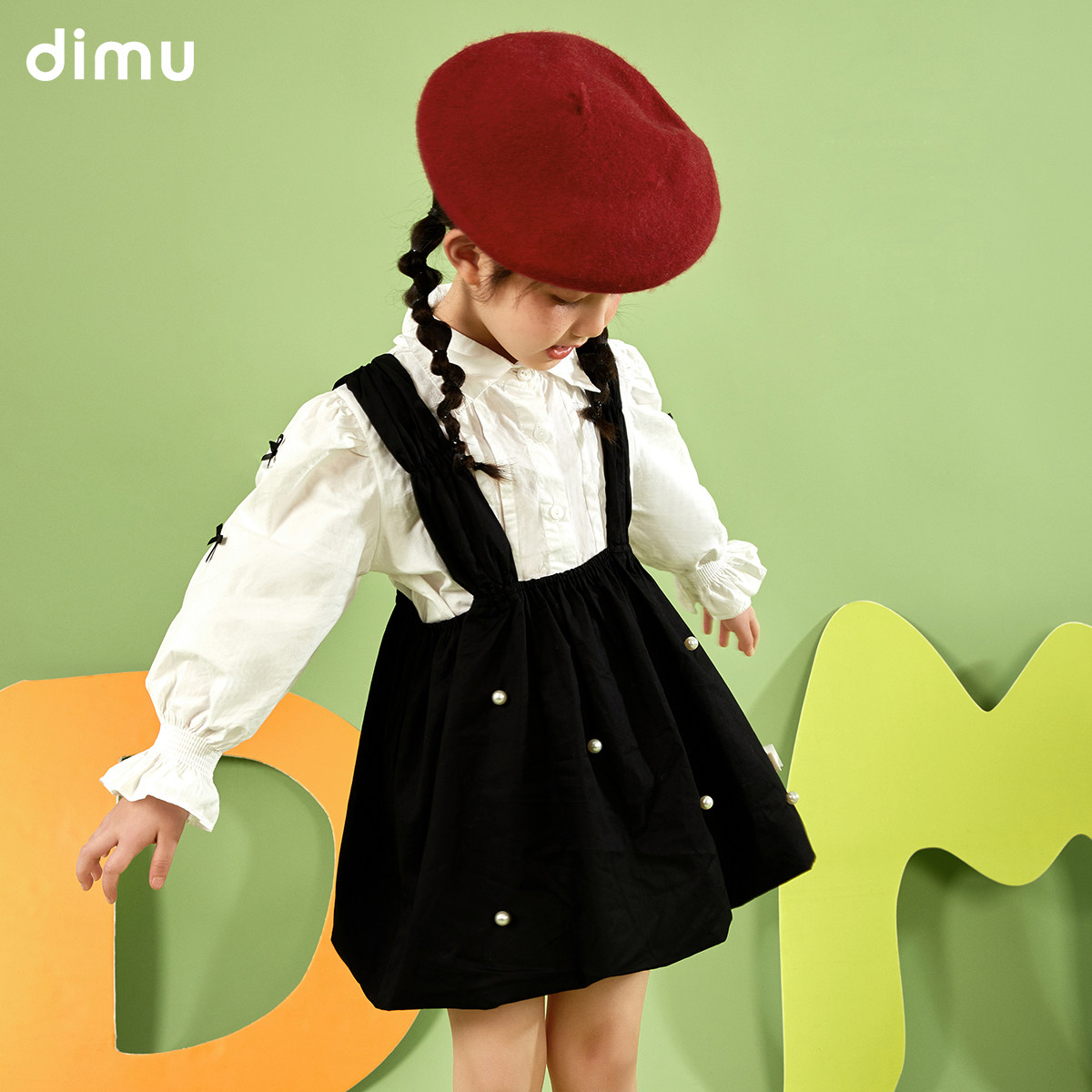 Flute Shepherd Girl Suit 2022 Spring Dress New Foreign Dress Pearl Children's Shirt Hug Bag Skirt two sets of damp