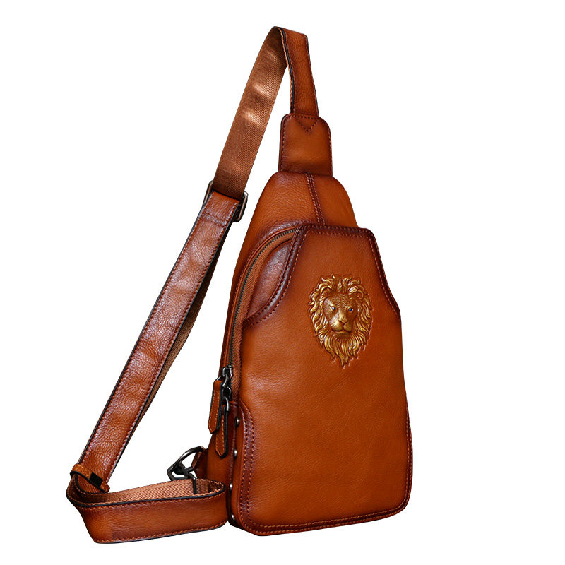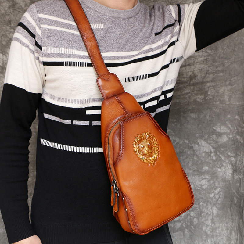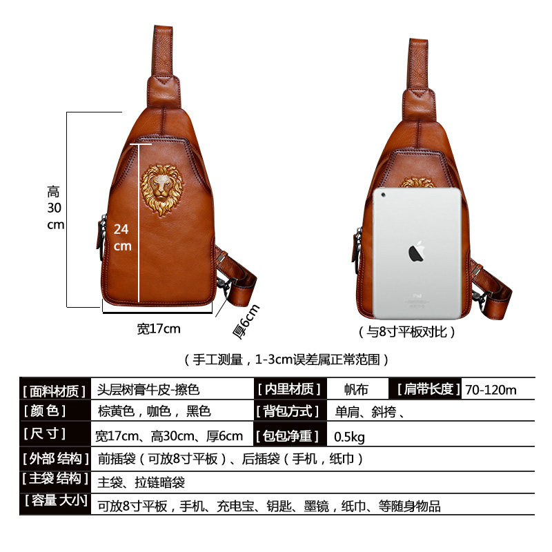 Leather chest bag men's single shoulder messenger bag first layer cowhide chest backpack diagonal shoulder bag new personality men's bag leather shoulder strap