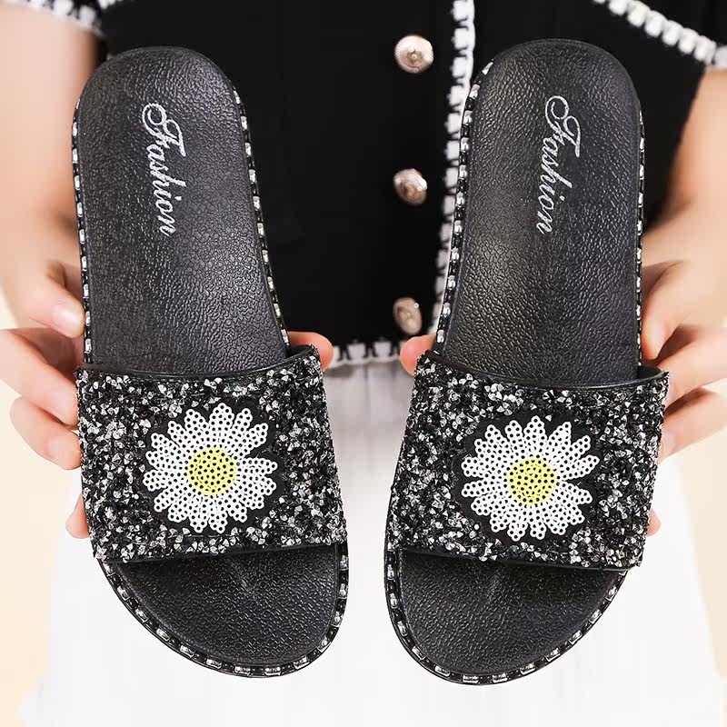 Fashion exterior wearing flat bottom sandals sandals shoes female summer net infrared wearing thick heel lined with thick bottom non-slip beach ins