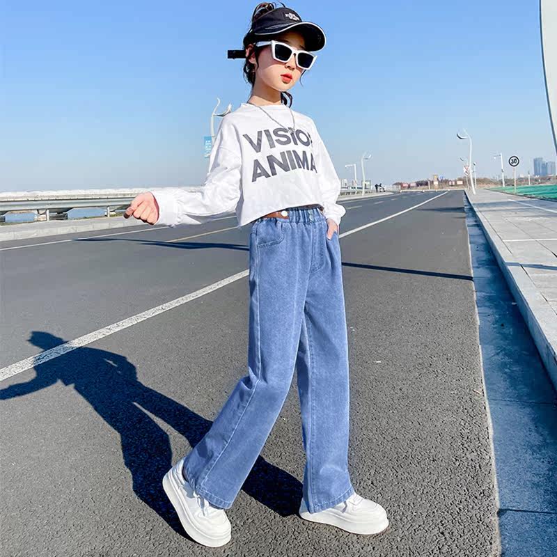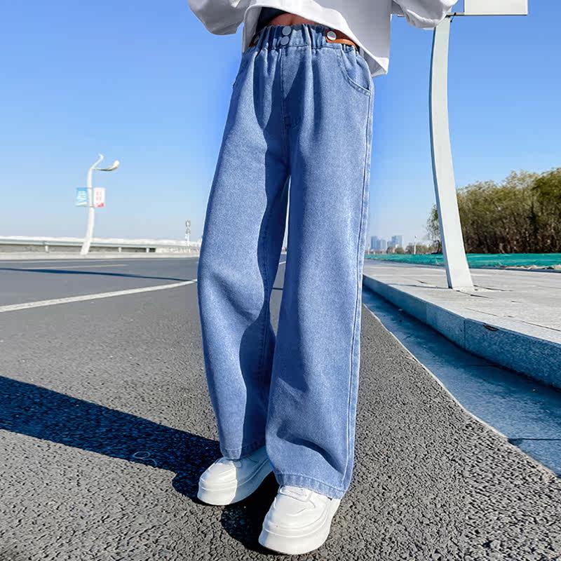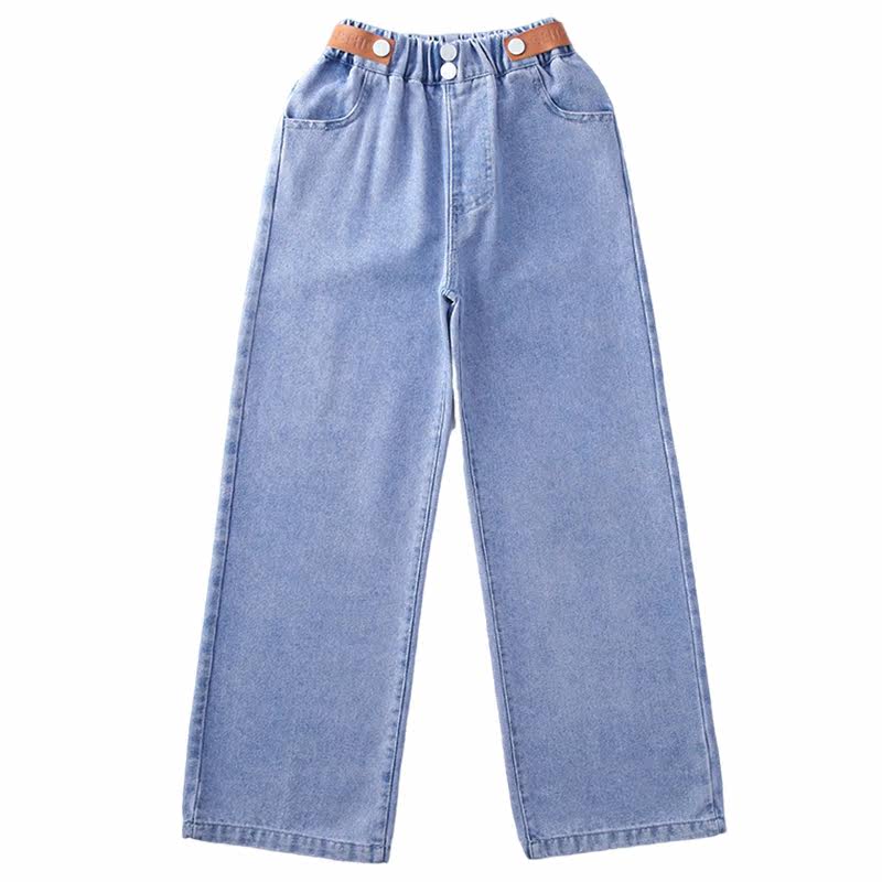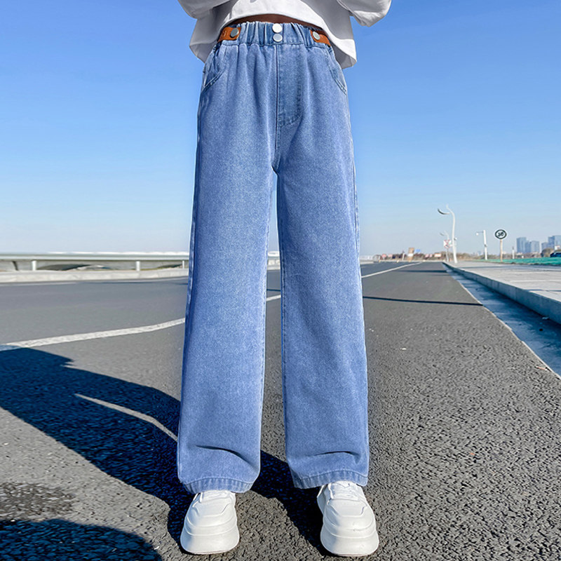 Broadlegged Pants Girl Spring New Light Color Jeans Children Loose Casual Straight Drum Pants Spring Autumn CUHK Scouts Pants
