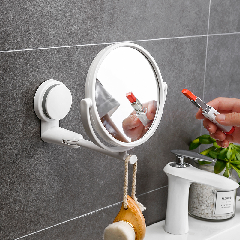 Perforated Bathroom Mirror Wall-mounted Folding Mirror Cosmetic Mirror Toilet Sticker Wall Magnifier Cosmetic Mirror bifacial mirror-Taobao