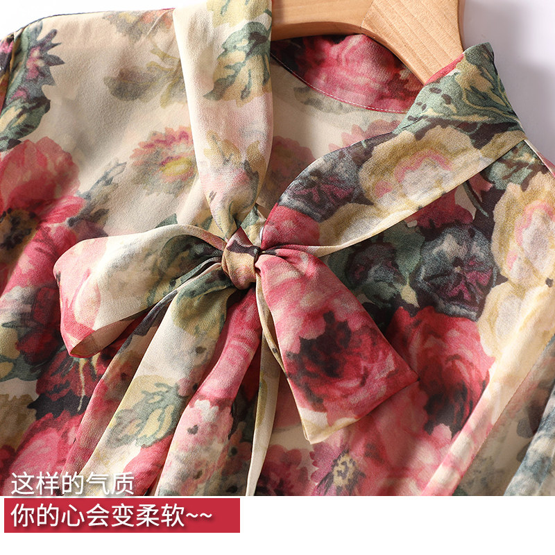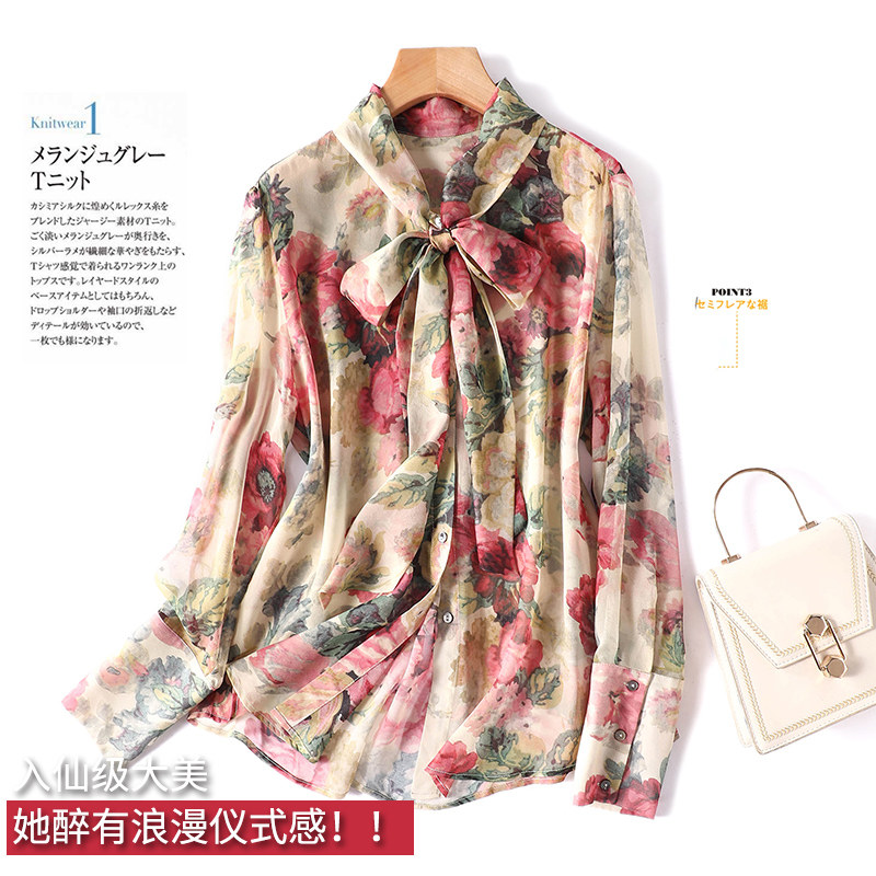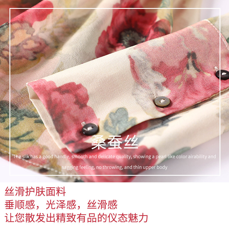 Be a fairy beauty ~ she is drunk with romantic ritual ~ printed silk shirt girl Sang silk elegant temperament coat