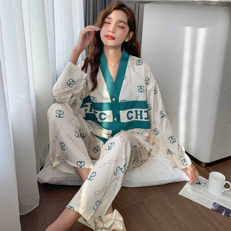Ice silk pyjamas women's spring and autumn long sleeves 2022 New small balsamic high sense when they are still available in the letter family residence