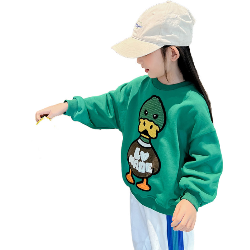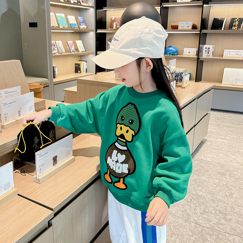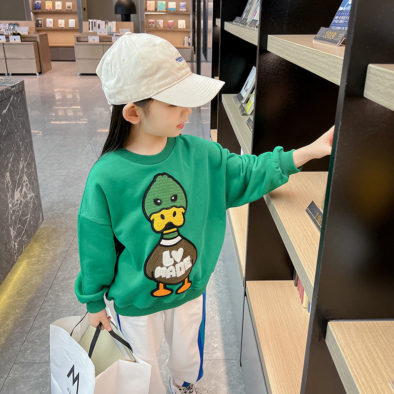 Girl's thick T-shirt spring clothing 2022 new foreign school children girl blouses CUHK children's spring and autumn net red trendy children's clothing wave
