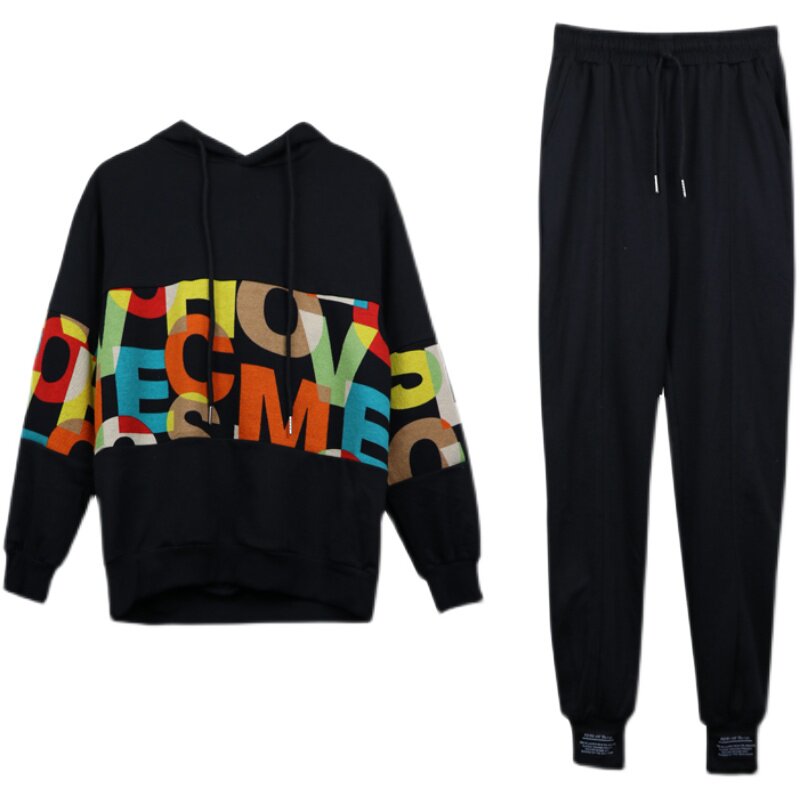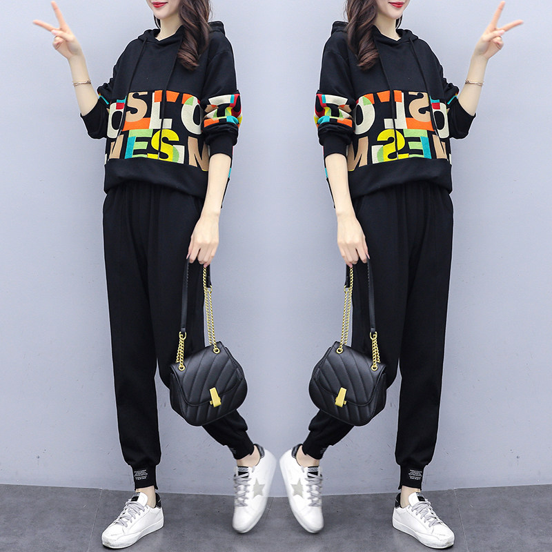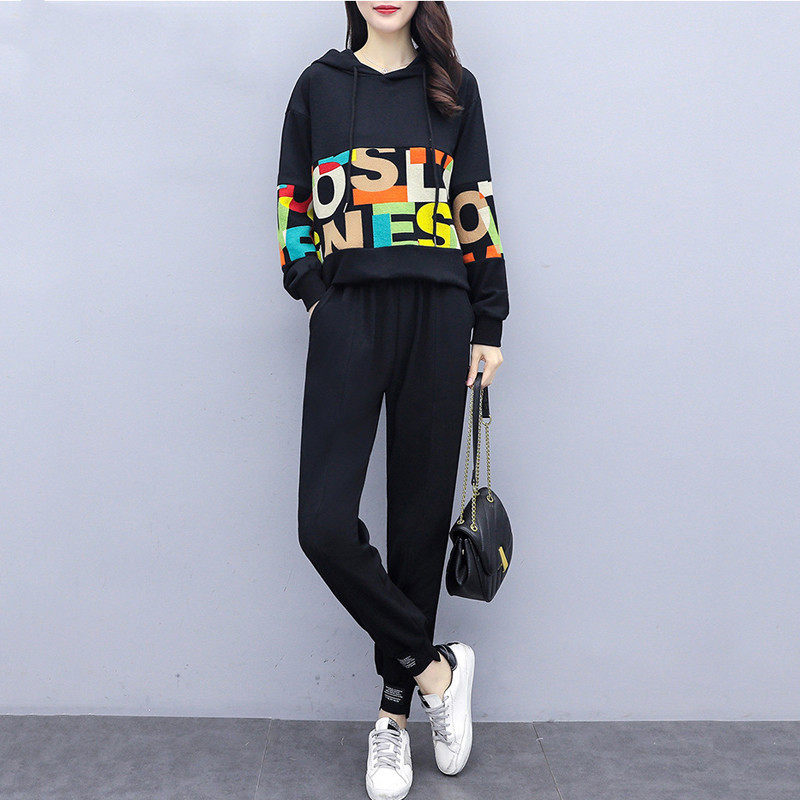 Leisure sports suit goddess fashion thin large number of loose blowing street letter linked hat zip reduced two pieces of age