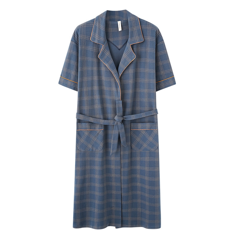 Romana Sleeping Robes Men's Summer Thin cotton short sleeves Large size Size Pyjamas men's bathrobes The long version of the Japanese style kimono