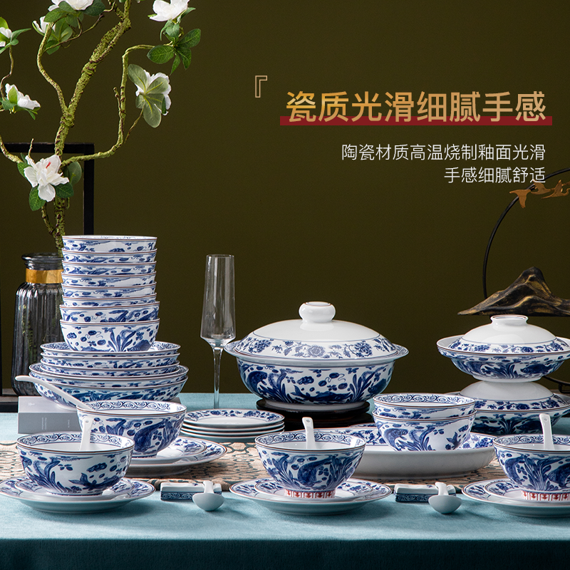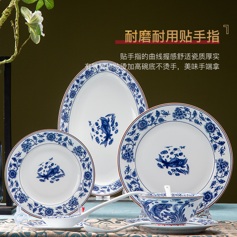 Red Leaf Porcelain Official Flagship Store 60 Head Fugui With Fish Chinese Dish Suit Home Jingdezhen White Porcelain Tableware