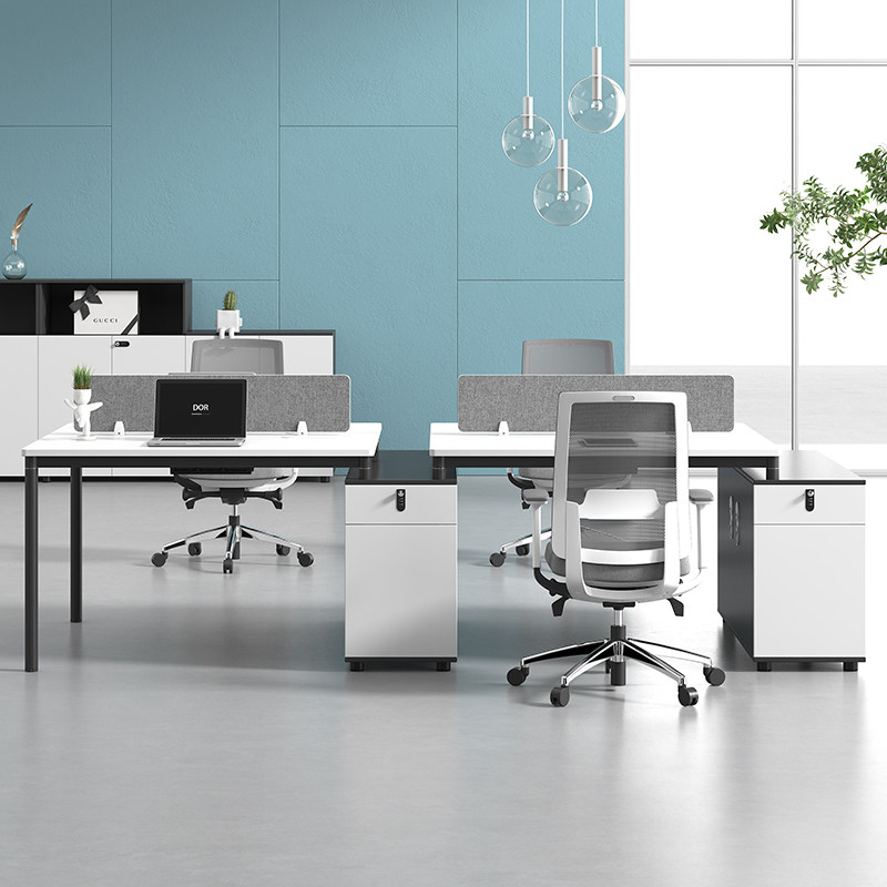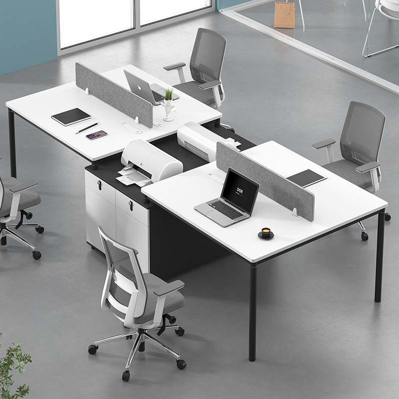 Staff Desk table and chairs combination of four persons in brief modern white 4 persons 2 employees table card holder office station