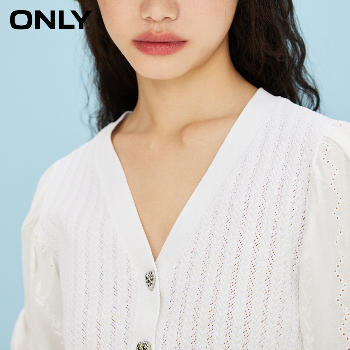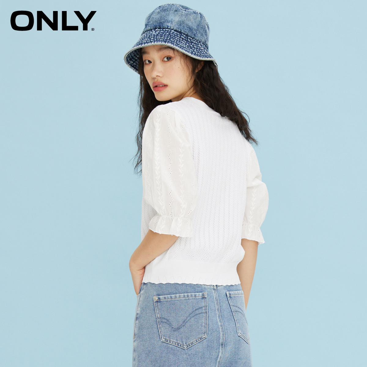 ONLY2022 Autumn New Western Style Short Sleeve Hollow Stitching Lace Sleeve Short Knit Sweater Women 122124019