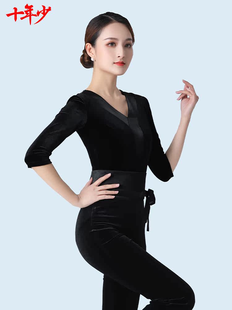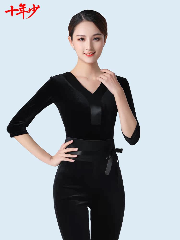 Ten years less black velvet body suit etiquette catwalk self-cultivation training suit professional elegant manner training suit female