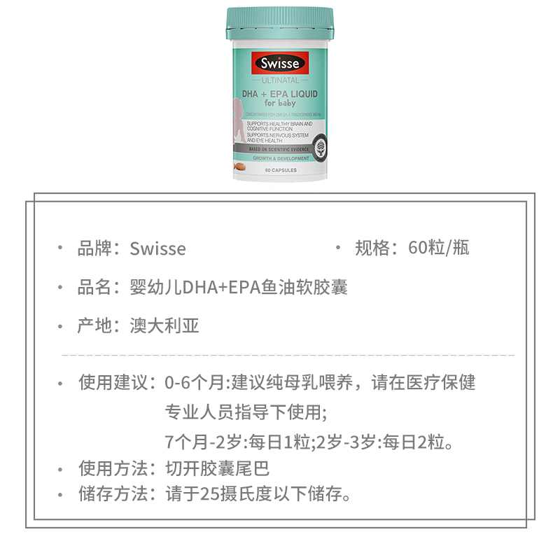 Swisse Swisse Children's DHA EPA Fish Oil Softgels 60 Capsules Baby's Smart Eye and Brain Development