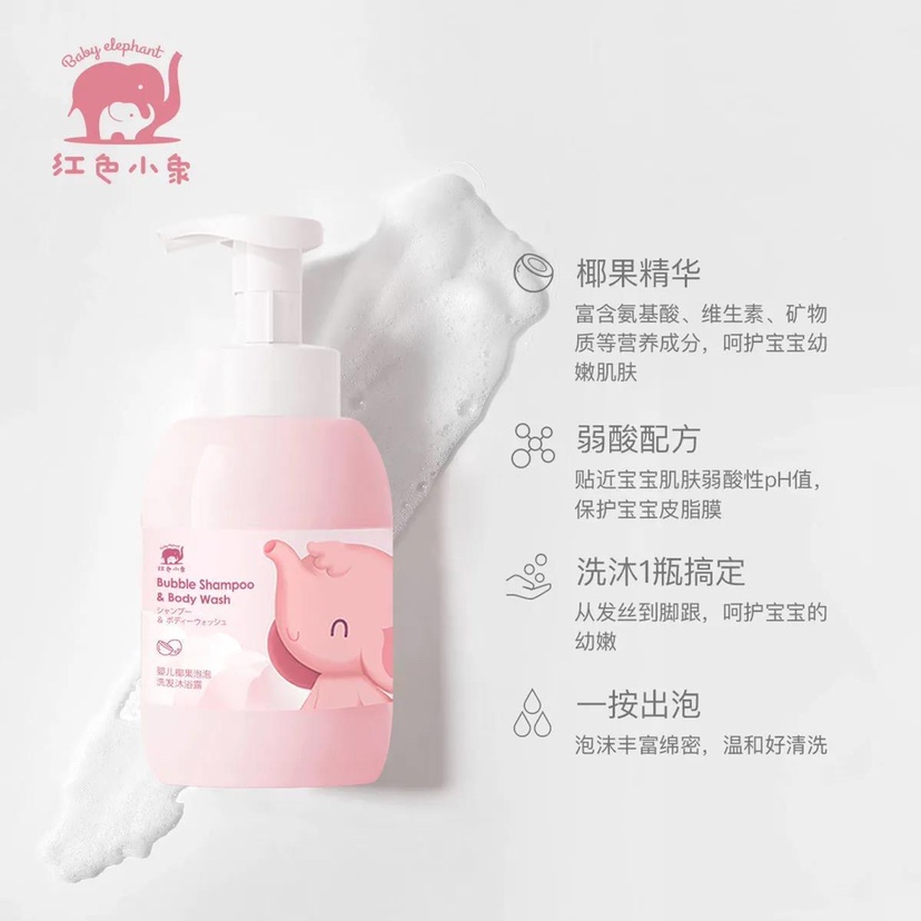 Red small elephant baby coconut fruit bubble shampoo with bath lotion two-in-one 260ml newborn baby bath special