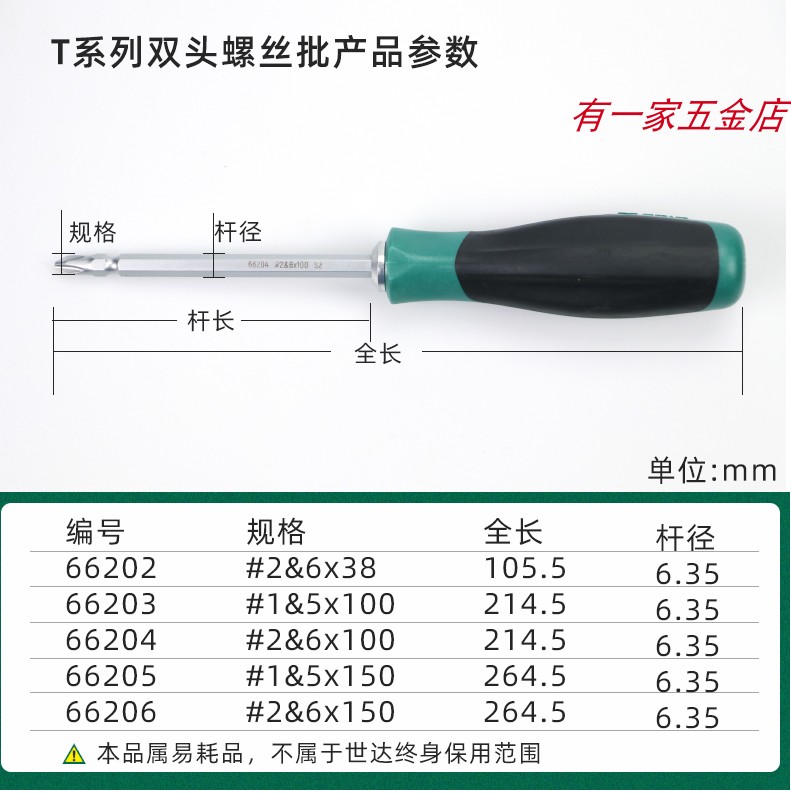 Shida double-head screwdriver dual-purpose screwdriver cross flat knife ultra-hard short robe head screwdriver screwdriver
