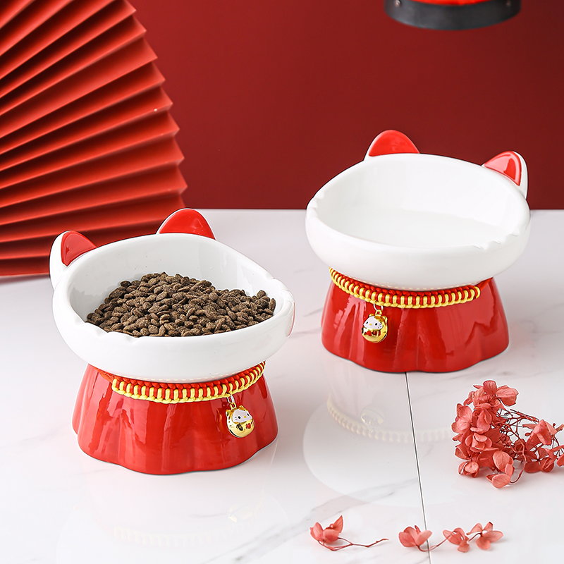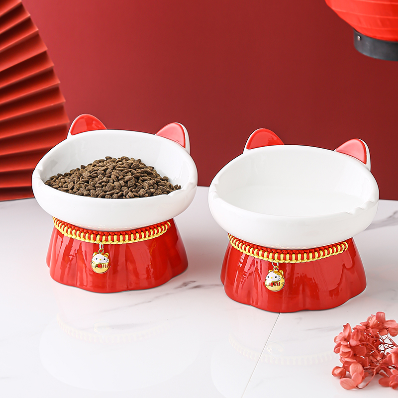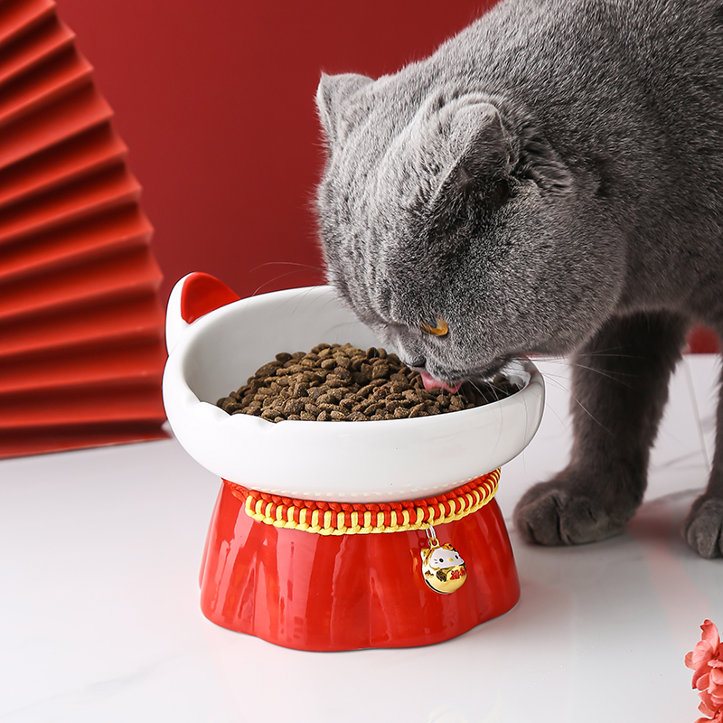 Cat Bowl Ceramic Black Prevention Chin tilt high feet neck cat pot bowl drinking pet bowl bowl pot anti-pot cute