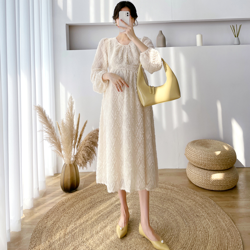 2022 Spring new fashion series Rope Long Sleeve Foreign Dress Woman Han Edition Loose slim medium long version Pregnancy Woman Dress Skirt