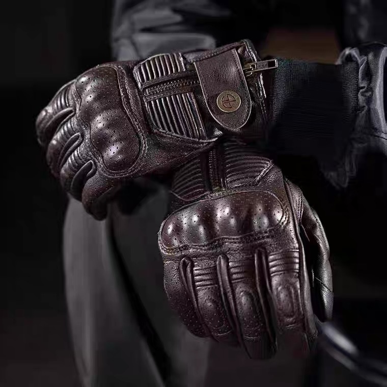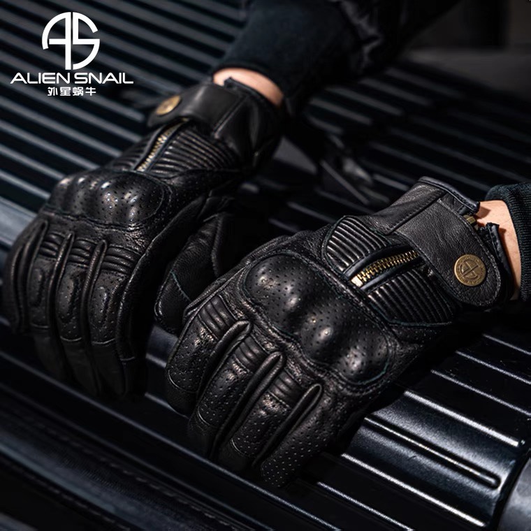Alien Snail Locomotive Gloves v8 Sheep Leather Retro Locomotive Rider riding perforated anti-fall Four Seasons breathable