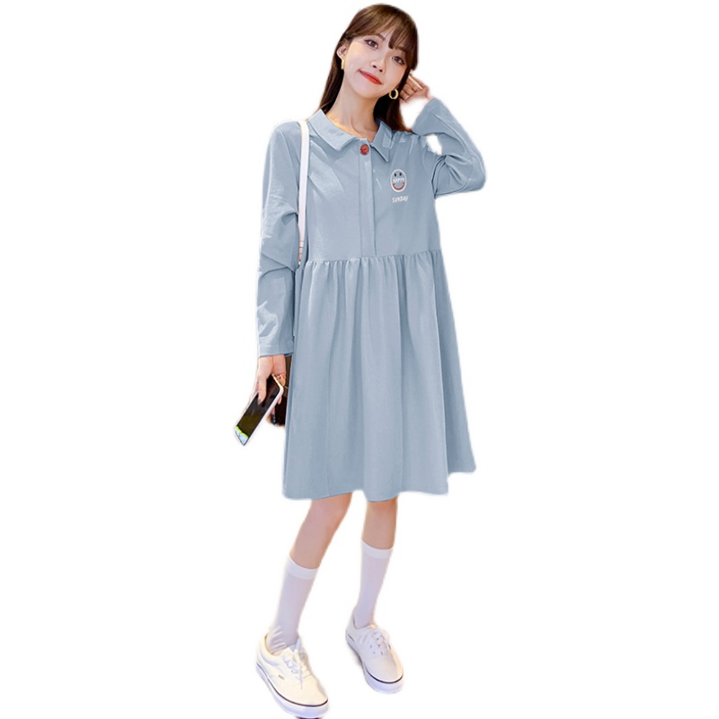 Pregnant women's spring clothing Han version A character dress slim medium long version loose cover long sleeve foreign dress fashion Chauma shirt dress