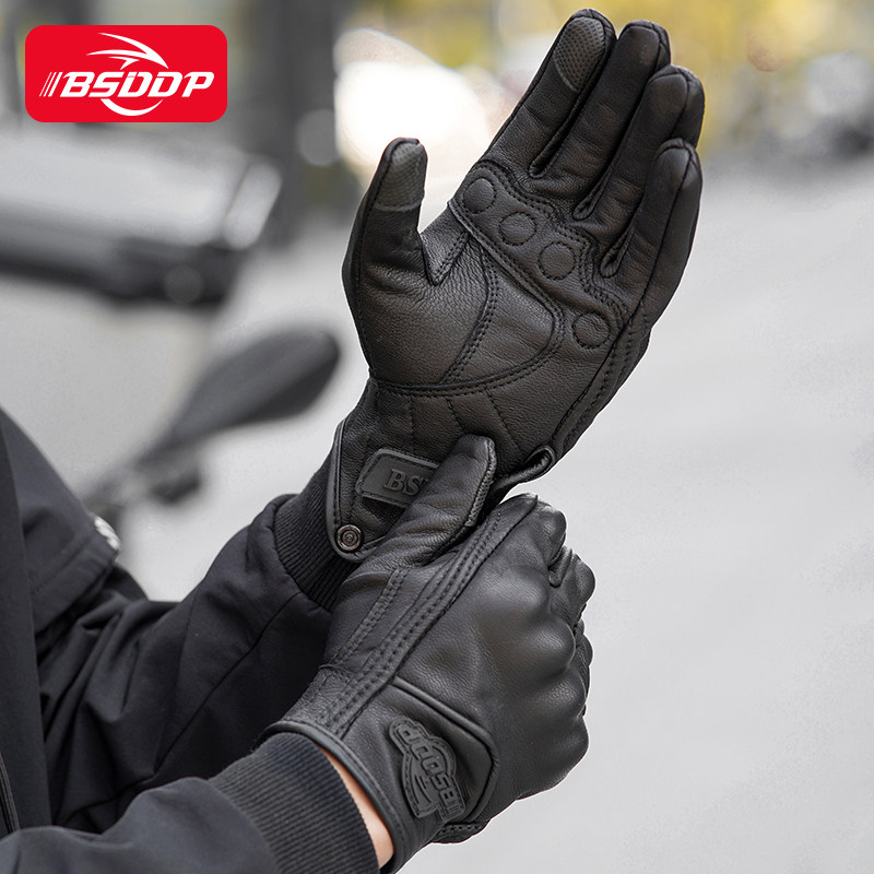 Motorcycle Gloves Retro Winter winter men and women Locomotive Gloves All Season Anti-Fall Breathable Waterproof Genuine Leather Riding Gloves-Taobao