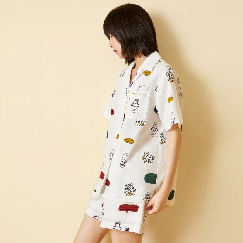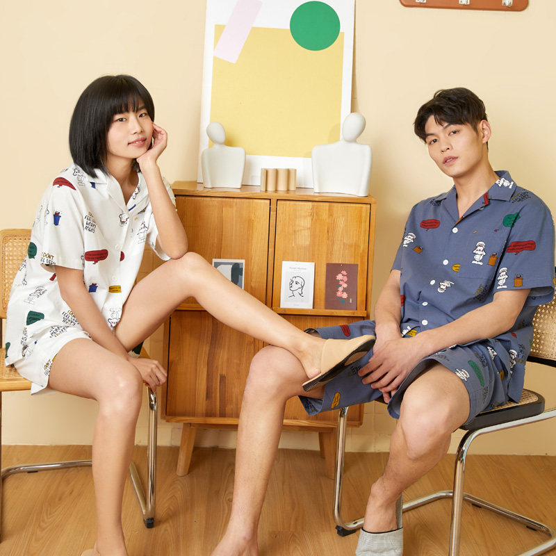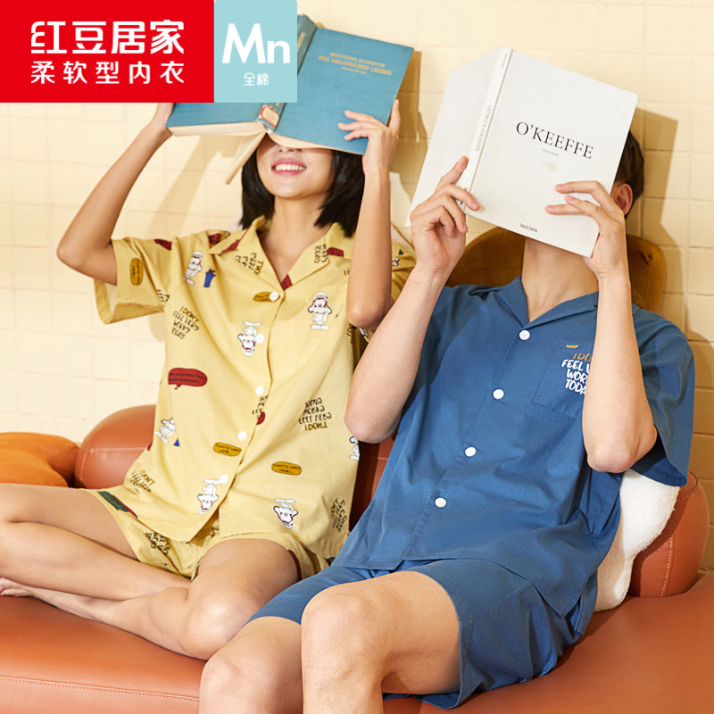 Red bean couple pajamas women's cotton short-sleeved shorts summer homewear suit men's Ole stripe loose thin section