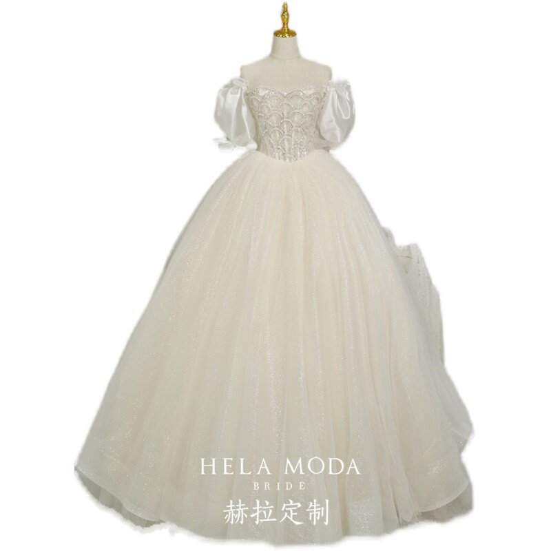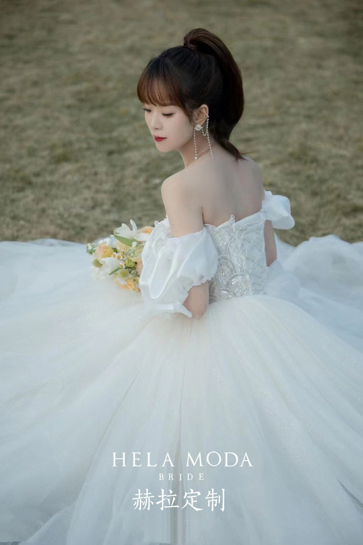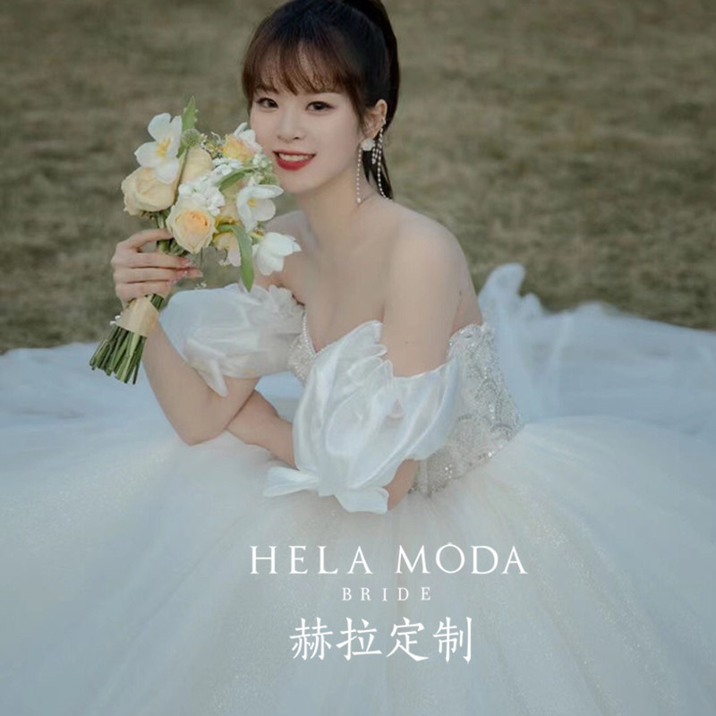 Hera customized "Shell" 2022 new sentient temperament slim shoulder bubble sleeve bride dragged the wedding dress
