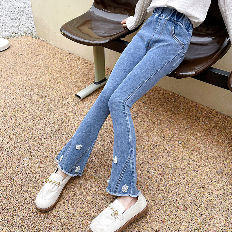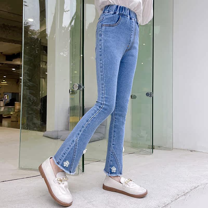 Girl Horn Pants Spring Autumn Light Color CUHK Children's Children Sashimi Jeans Spring Children Microlao Casual Long Pants