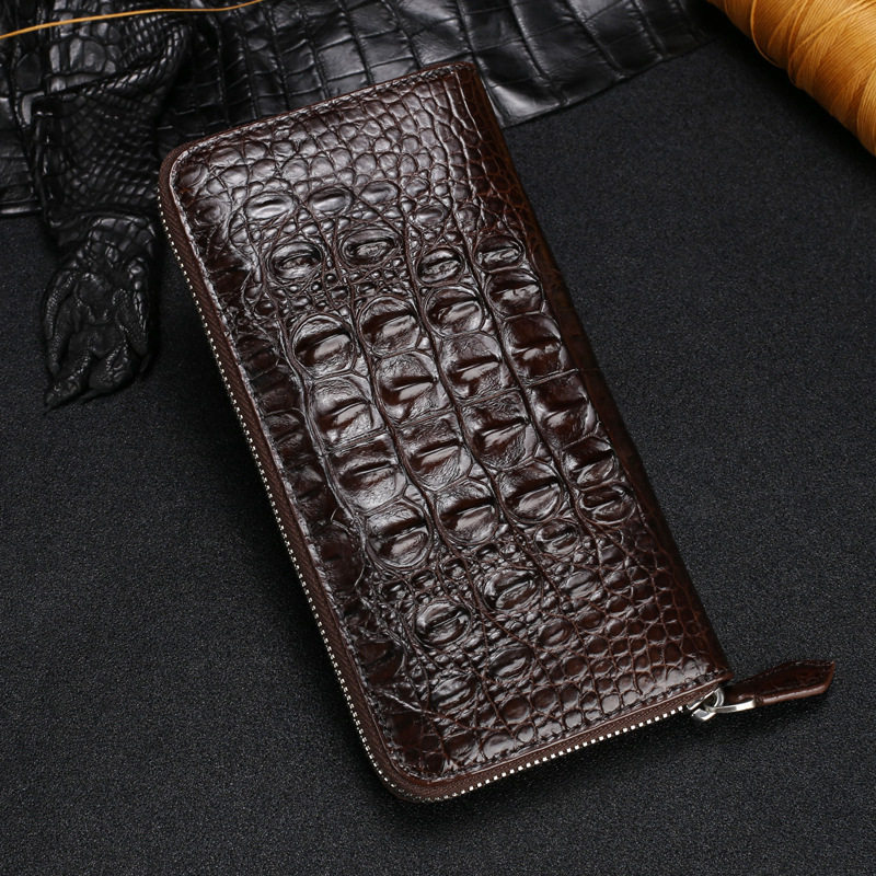 Man Crocodile Backbones Leather Hand Grab Wallet Business Zipper Clip Wallet Long multi-position Large-capacity Handbag Card Pack-Taobao