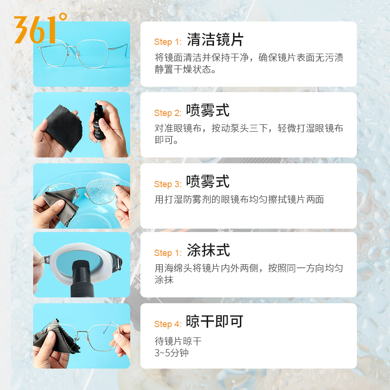 White spray style 5ml-72 hours effective anti-fog (only for swimming goggles) blue spray style 10ml-72 hours effective anti-fog (for swimming goggles only) Colour daubing style 15