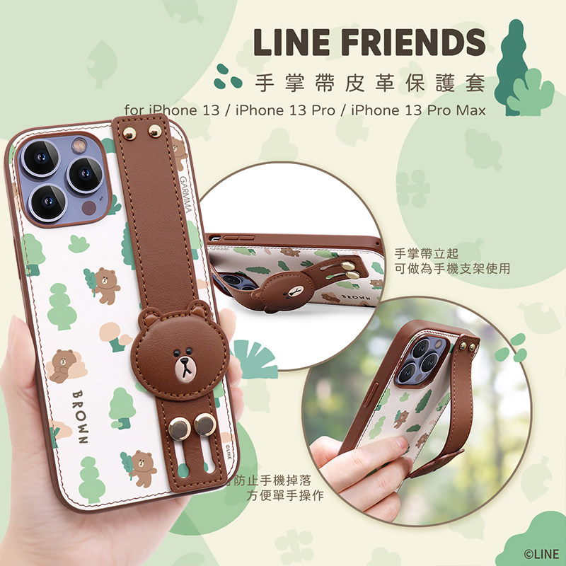 line Brown bear iPhone13 mobile phone protection shell pro creative wrist max apple 13 leather bracket protective sleeve woman