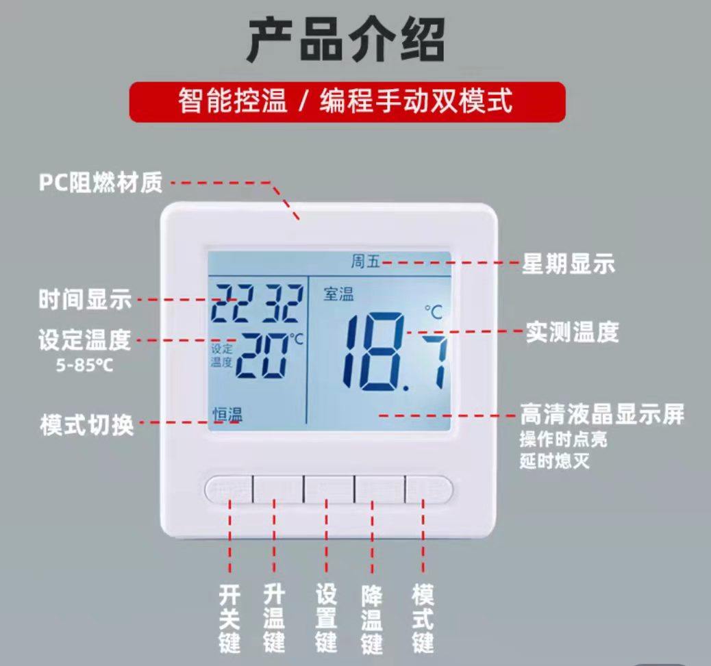 Programming Electric Heating Controller Switch Digital Intelligent LCD Electronic Carbon Fiber Electric Fiber Electric Film Panel Household Dark Package