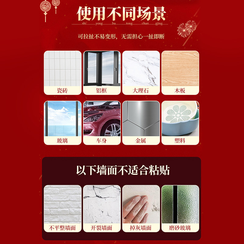 No-mark double-sided adhesive spring couplets adhesive wall posters Wedding wedding ceremony Balloons New Year Happiness Fu Character Decoration Fixed Back Glue