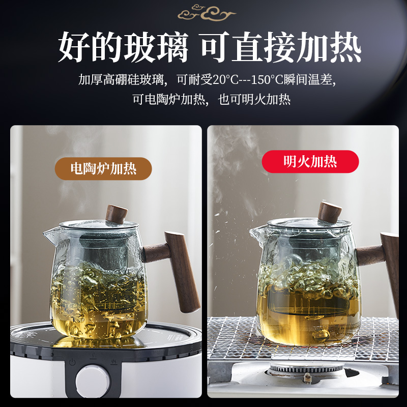 Teapot home glass High-temperature resistant brewing tea Tea Kettle Tea Kettle Single Pot Black Crystal Stove Tea Set Group Flower Tea Bubble Teapot