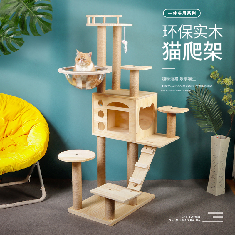 Cat Climbing Cat Cowl Cat Tree Integrated Small no-floor space cabin Tomb Cat Grab Board Solid Wood Cat Shelf