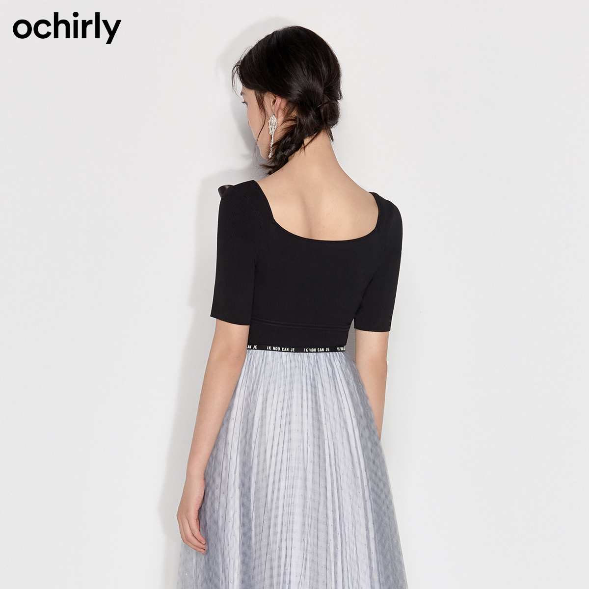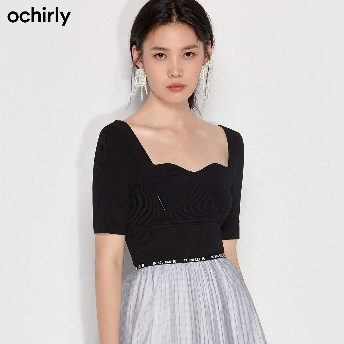 ochirly Oshili 2022 new autumn wavy collar short short-sleeved sweater women 1WY103142F