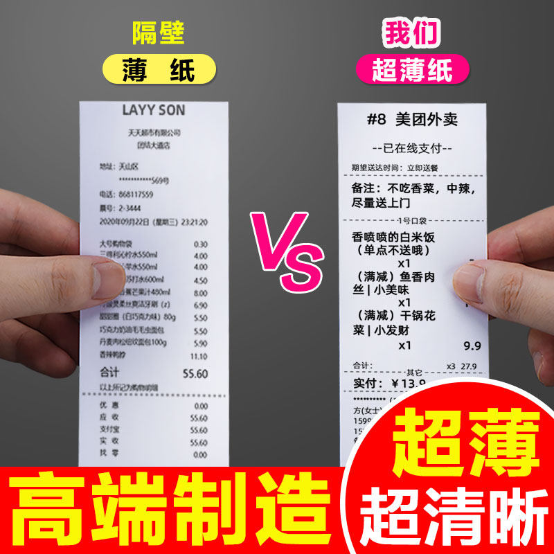 Tube-free core ultra-thin form Thermal 57 × 50 cashier paper thin section 80x80 supermarket 80x60 rear kitchen 80mm small ticket paper 80x50 takeaway beauty group 57x30x40 small roll