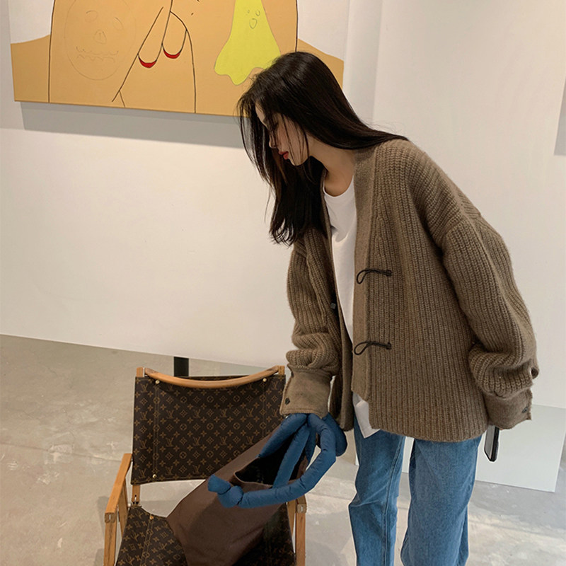 Art raw milk gentleness Faculty Wind loose sweater jacket Lazy Breeze don't make Korean knit cardio-hoodie women's spring and autumn