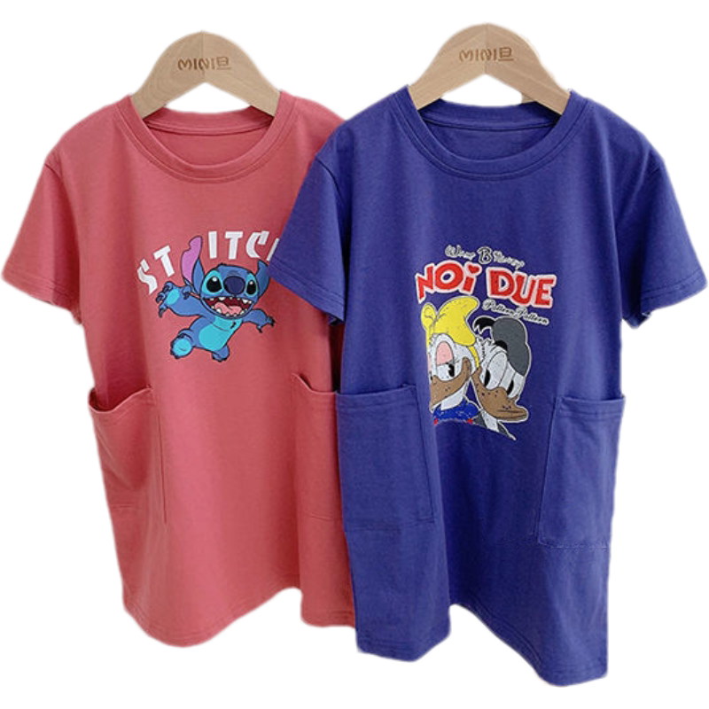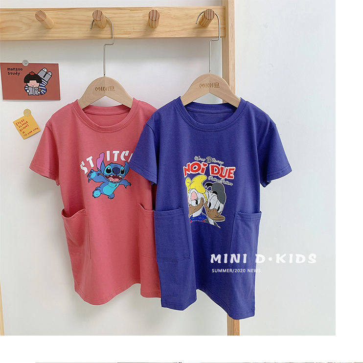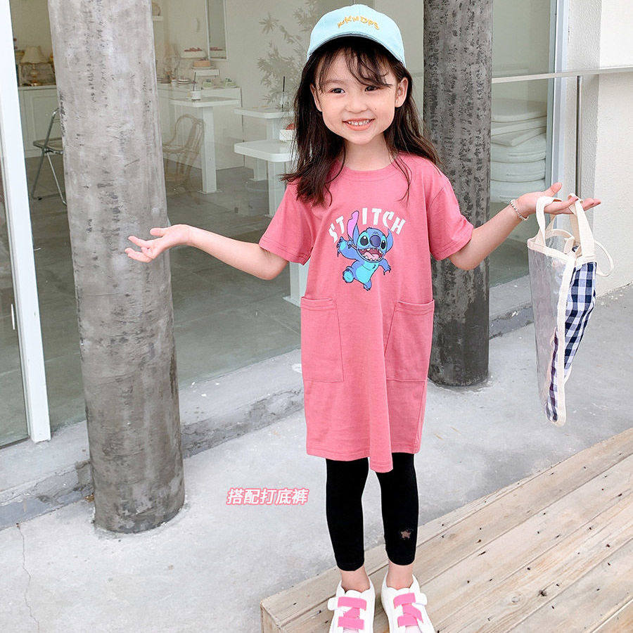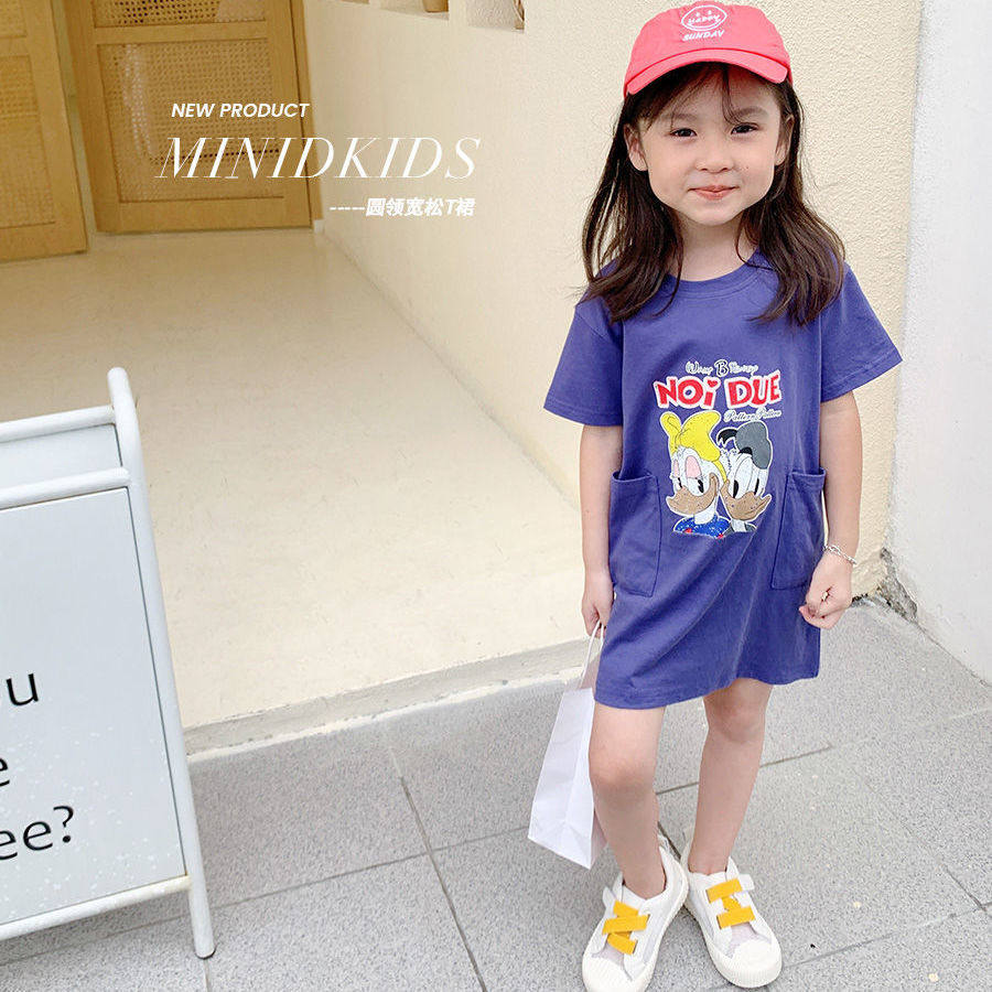 Girls 2022 summer new cotton cartoon printed short-sleeved t-shirt skirt children's baby girl casual dress