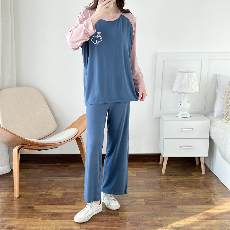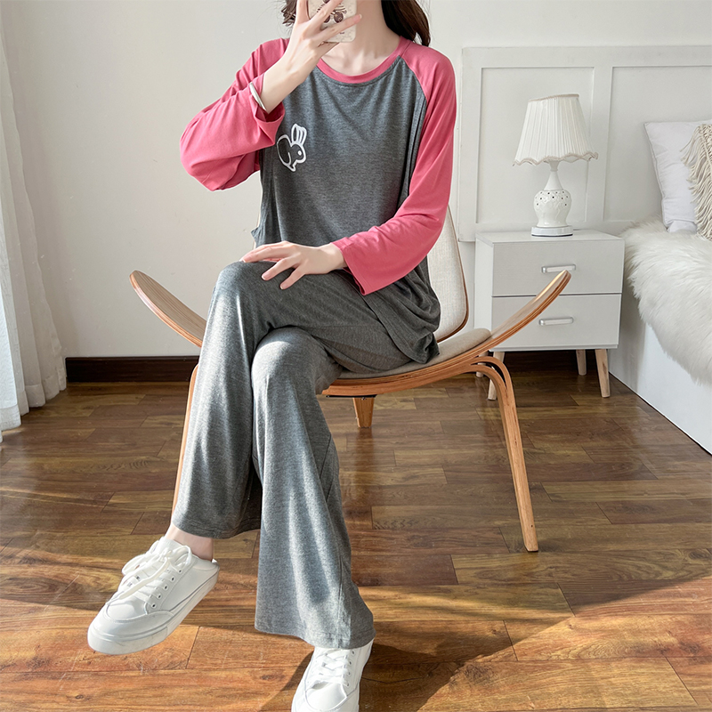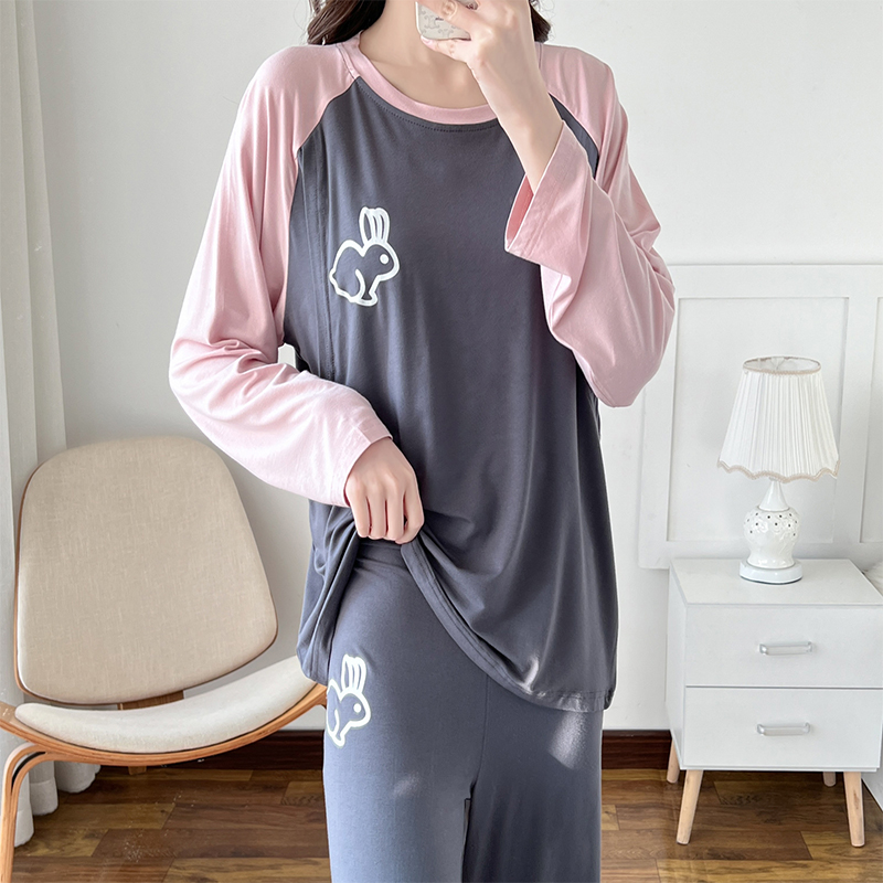 Spring and autumn slim-in-a-breasted clothes month Breastfeeding Clothes Bottom Cardiovert Pyjamas breastfeed T-shirt T-shirt Pregnant Woman Pants-Taobao