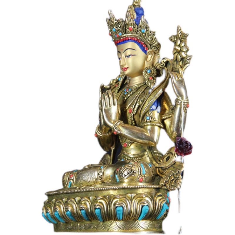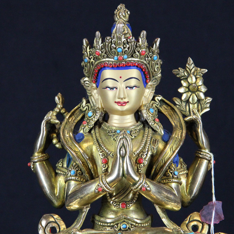Sakya Four-arm Guanyin Buddha statue Nepal handmade pure red copper Chinese gold inlaid jewel Home Buddha Buddha Pendulum for the Buddha pendulum